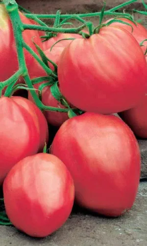 Среднеспелый (105-115 дней) сорт для выращивания в открытом (в теплом климате) и защищенном грунте. Растение индетерминантное высотой до 180см, формируется в 1-2 стебля, требует подвязки и умеренного пасынкования. Плод плоскоокруглый, слаборебристый, розового цвета, мясистый, плотный, массой 300г (до 800г). Используют в свежем виде и на томатопродукты. Урожайность 12,0 – 15,0кг/кв.м.