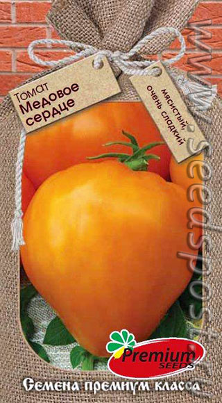 Раннеспелый, детерминантный, высокоурожайный сорт (от полных всходов до созревания плодов 90-94 дня). Не требует формирования стебля. Плод сердцевидный, ярко- оранжевой окраски, массой 120-140 г. Имеет повышенное содержание бета-каротина, что дает возможность использовать для приготовления диетических соков. Плоды мясистые и сладкие, как мед! Сорт устойчив к растрескиванию.