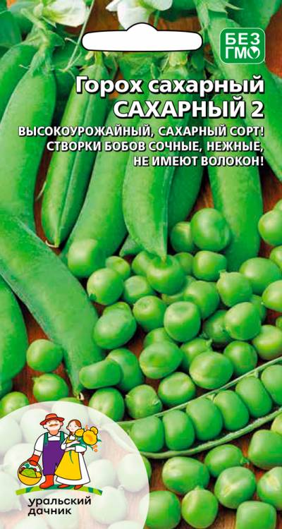 Высокоурожайный, раннеспелый, сахарный сорт. Бобы изогнутые, длиной 6-8 см с 7-8 крупными тёмно-зелёными, сладкими горошинами. Сахарные «лопатки» вместе с сочными горошинами – отменное лакомство с деликатесным, сахарным вкусом, употребляются в период молочной спелости. Ценность сорта: холодостойкость, устойчивость к полеганию, высокие вкусовые и диетические качества, повышенное содержание белка. Рекомендуется для употребления в свежем виде, консервирования, заморозки.