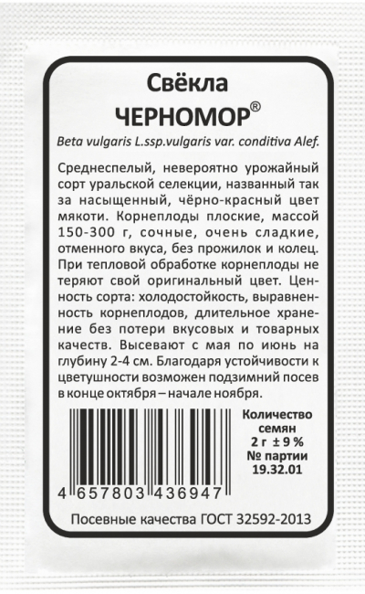 Среднеспелый невероятно урожайный сорт Уральской селекции, названый так за насыщенный, чёрно-красный цвет мякоти. Корнеплоды плоские и округло- плоские, массой 150-300 г, сочные, очень сладкие, отменного вкуса, без прожилок и колец. При тепловой обработке корнеплоды не теряют свой оригинальный цвет.