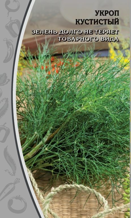 Для всех регионов России! Высокоурожайный сорт кустового типа, для многоразовой уборки (за сезон 3-6 срезок, быстро отрастает после срезки). Среднеспелый (от всходов до первой срезки на зелень 39-43 дня). Долго не выбрасывает зонтик. Листья крупные и пушистые, не обвисают, благодаря этому остаются чистыми после полива и дождя, очень ароматные, высоких вкусовых качеств, для потребления в свежем виде, сушки, заморозки и консервирования. Обладает устойчивостью к основным болезням. Урожайность 1,8-3,1 кг/м2.